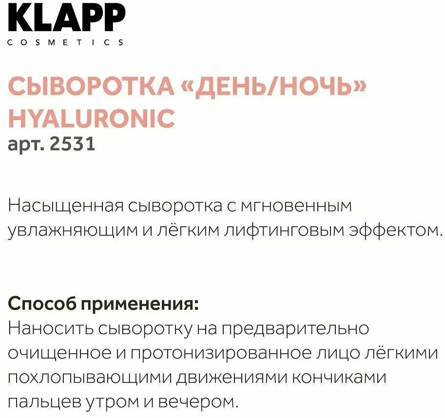 Klapp Сыворотка "Гиалуроник День-Ночь" 50 мл (Klapp ) (KL2531)