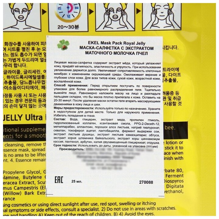 Ekel Тканевая маска с маточным молочком 25 г (Ekel ) Royal Jelly Ultra Hydrating Essense Mask
