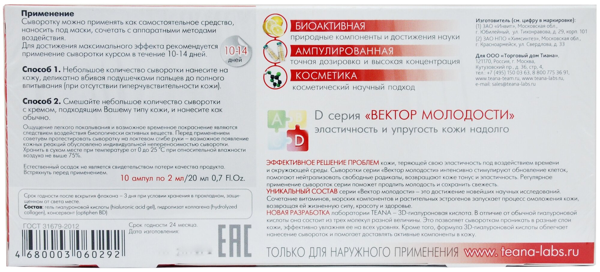 Teana «D3» Морской коллаген Сыворотка для стареющей утратившей эластичность кожи 10х2 мл (Teana ) (TEA1012)