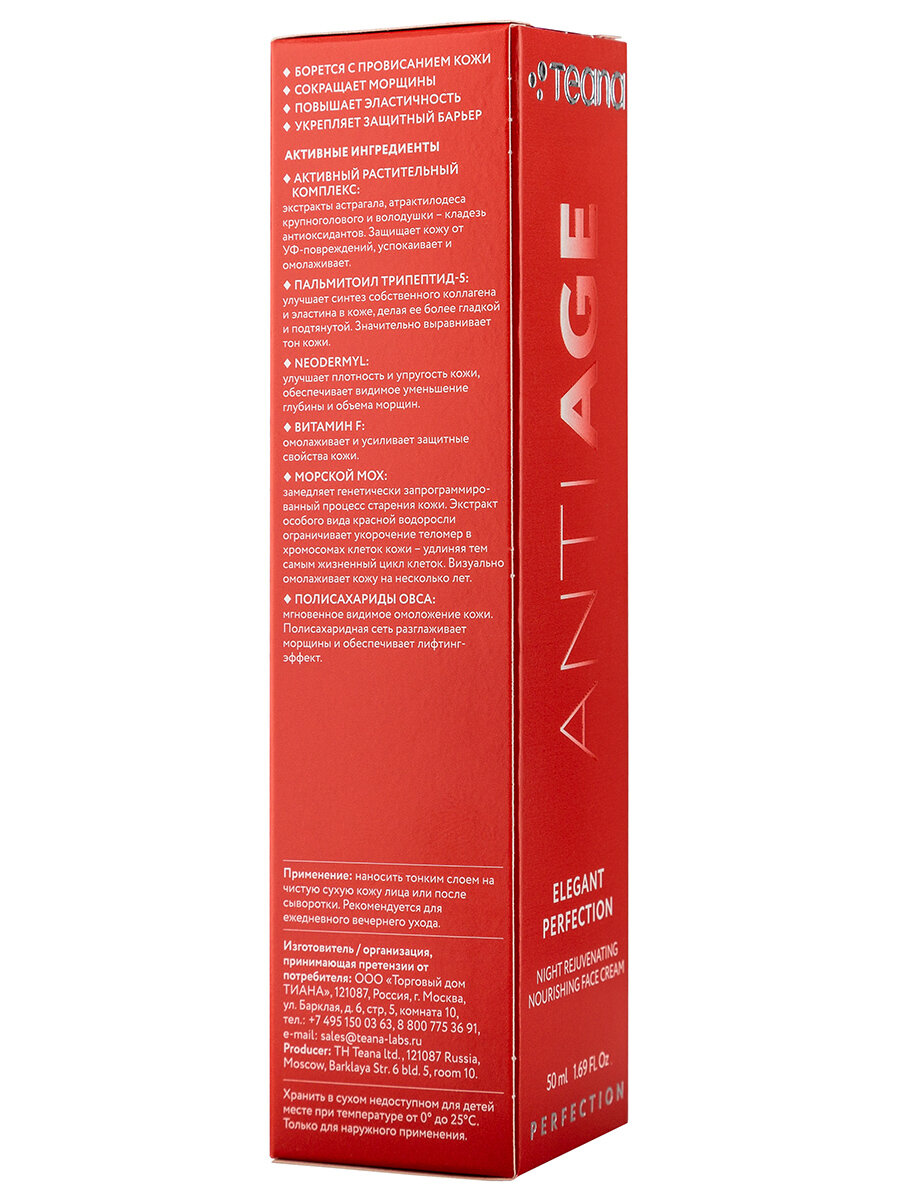 Teana Элегантное совершенство Омолаживающий питательный насыщенный ночной сенсорный крем 50 мл (Teana ) (TEA2022)