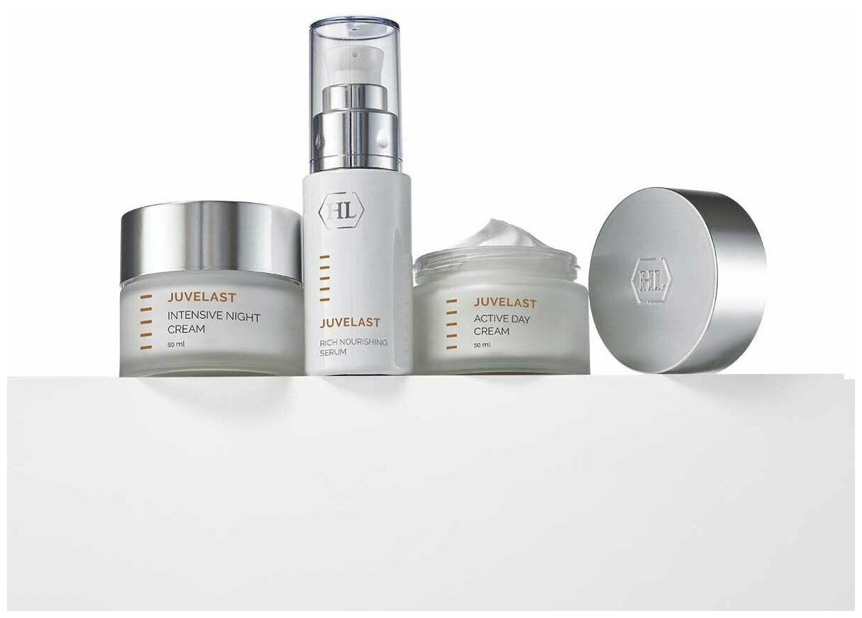 Линия средств JUVELAST произведена на основе запатентованного кофактора ДНК, который улучшает текстуру кожи и уменьшает появление глубоких морщин.