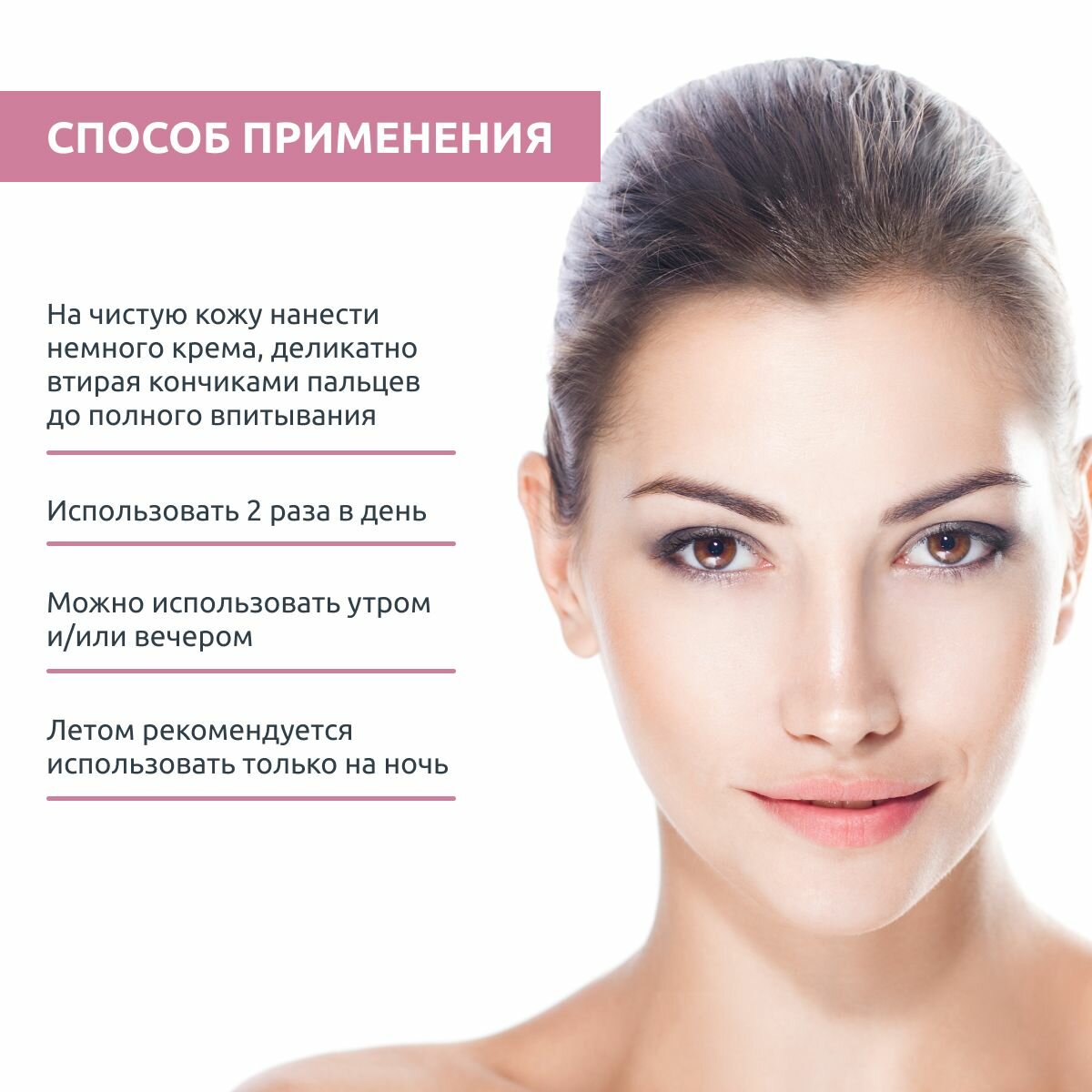 | Способ применения | На чистую кожу нанести немного крема, деликатно втирая кончиками пальцев до полного впитывания. Применять 2 раза в день. Может быть использован для кожи вокруг глаз. |