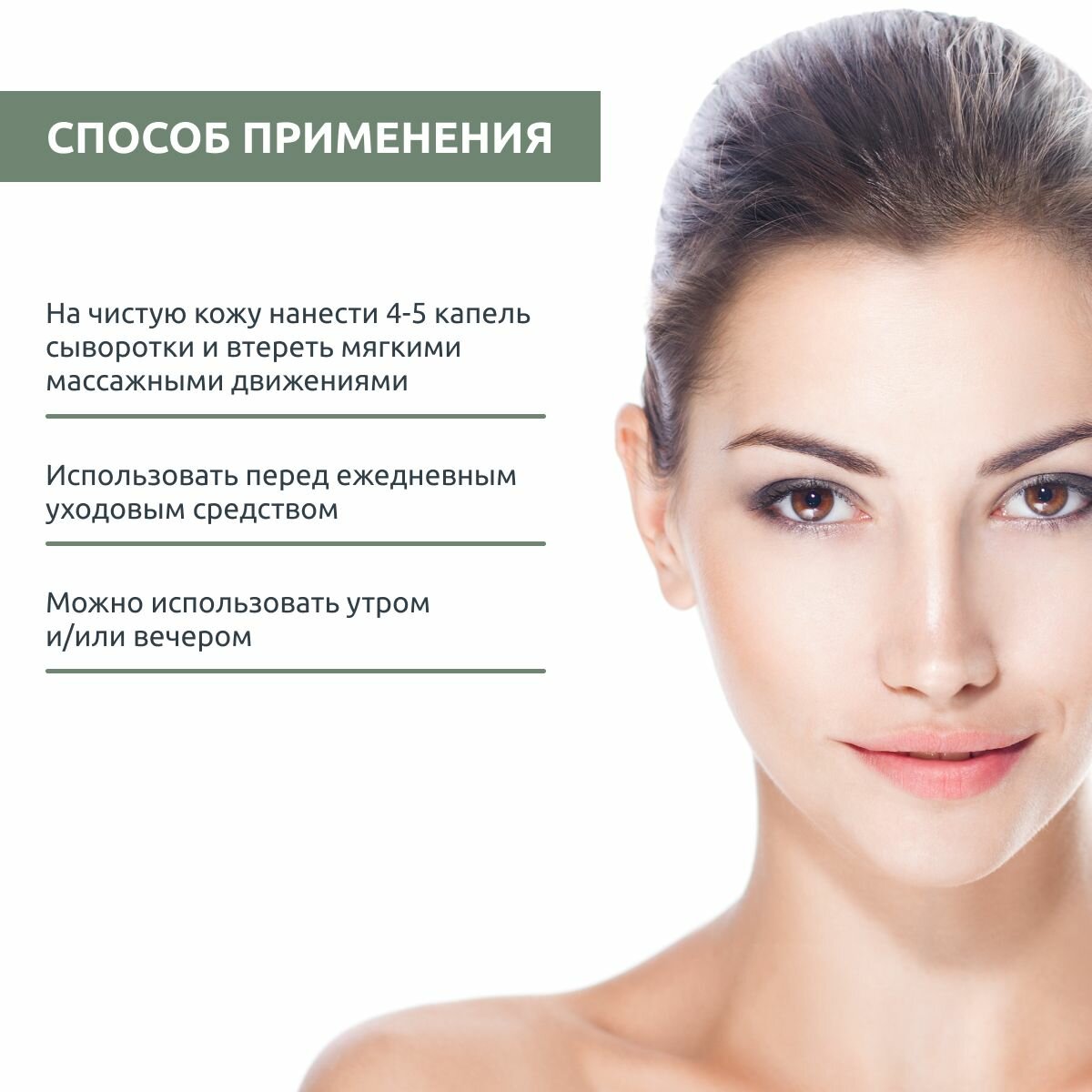 | Способ применения | На чистую кожу нанести 4-5 капель сыворотки и втереть мягкими массажными движениями. Использовать перед ежедневным уходовым средством. Можно применять утром и/или вечером. |