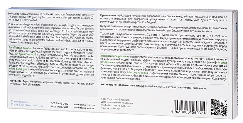 Сервис сравнения цен СкидкаГИД предлагает сравнить цены на товар «Teana Сыворотка «D2» «Моментальный лифтинг» 10х2 мл (Teana ) (TEA1015)»