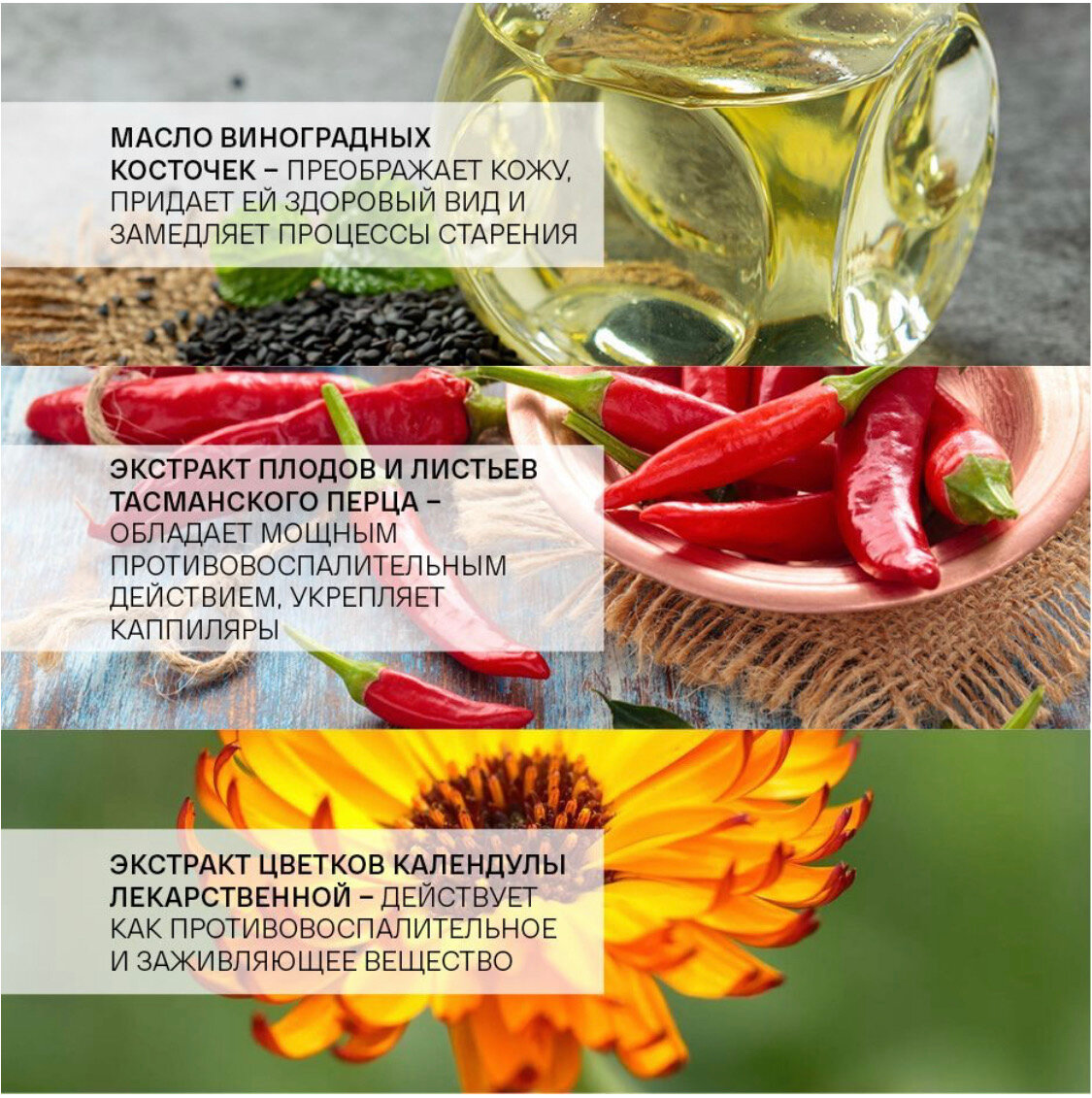 | Активные компоненты | деионизированная вода, каолин, глицерин, оксид цинка, экстракт цветков календулы лекарственной, масло семян подсолнечника, масло виноградных косточек, диоксид титана, экстракт плодов тасманийского перца, экстракт прополиса, лимонная кислота, камфора, ментил лактат, масло герани пятнистой |