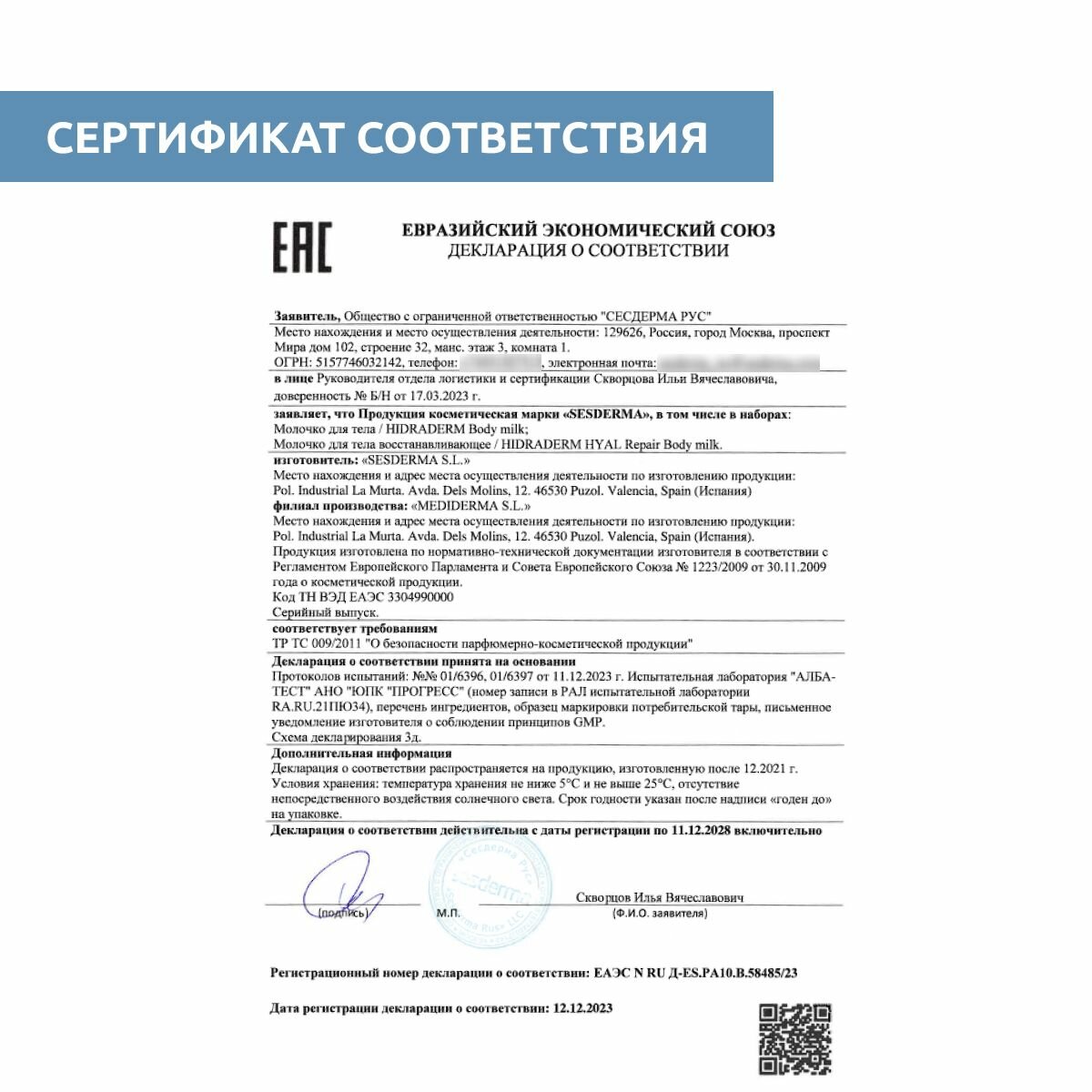 | Фирма-производитель | SESDERMA S.L. |