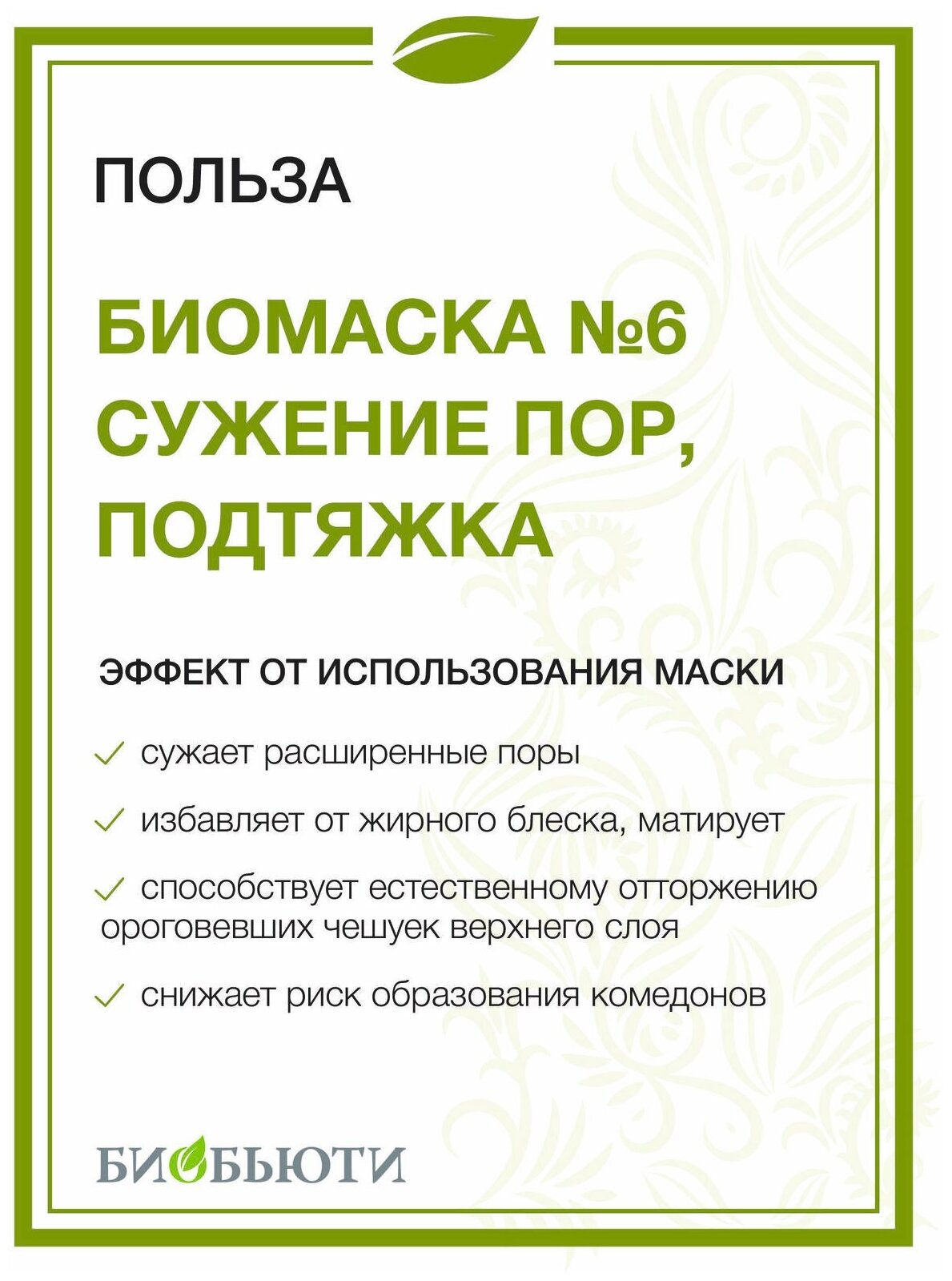 Биобьюти Биомаска для лица № 6 Сужение пор подтяжка 50 г (Биобьюти ) (BIOB0017-0050)