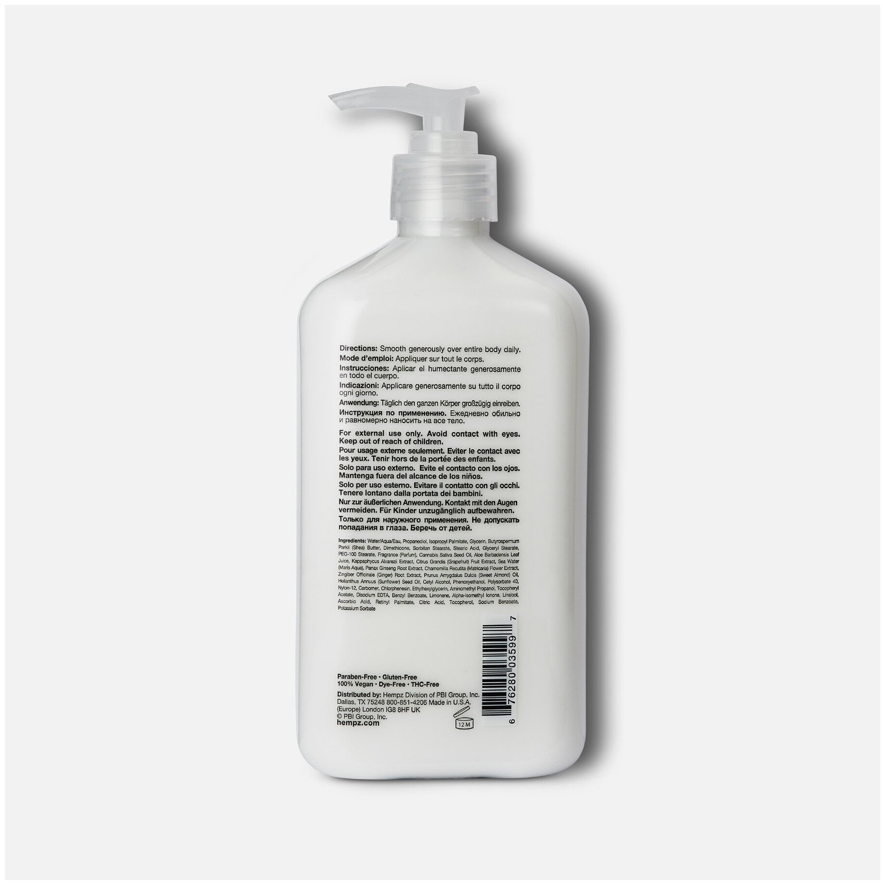| Состав | Water, Propanediol, Isopropyl Palmitate, Glycerin, Shea Butter, Dimethicone, Sorbitan Stearate, Stearic Acid, Glyceryl Stearate, PEG-100 Stearate, Parfum, Cannabis Sativa Seed Oil, Aloe Barbadensis Leaf Juice, Kappaphycus Alvarezii Extract, Grapefruit Fruit Extract, Sea Water, Panax Ginseng Root Extract, Matricaria Flower Extract, Ginger Root Extract, Sweet Almond Oil, Sunflower Seed Oil, Cetyl Alcohol, Phenoxyethanol, Polysorbate 40, Nylon-12, Carbomer, Chlorphenesin, Ethylhexylglycerin, Aminomethyl Propanol, Tocopheryl Acetate, Disodium EDTA, Benzyl Benzoate, Limonene, Alpha-Isomethyl Ionone, Linalool, Ascorbic Acid, Retinyl Palmitate, Citric Acid, Tocopherol, Sodium Benzoate, Potassium Sorbate |