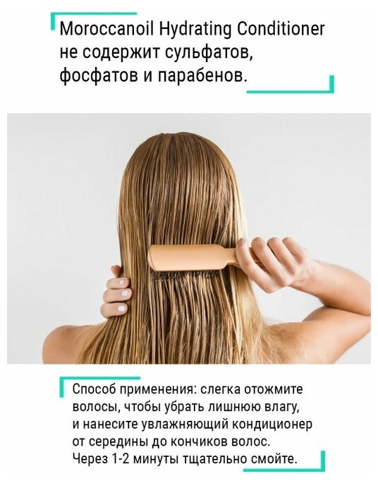Нанесите небольшое количество увлажняющего шампуня на влажные волосы и кожу головы, бережно втирая его по всей длине. Постепенно добавляйте воду до получения густой пены, активирующей работу высококонцентрированной формулы. Тщательно смойте, при необходимости повторите процедуру. Слегка отожмите волосы, чтобы убрать лишнюю влагу, и нанесите увлажняющий кондиционер от середины до кончиков волос. Через 1-2 минуты тщательно смойте. Для достижения наилучших результатов проводите профессиональный уход за волосами с помощью увлажняющих средств Moroccanoil регулярно.