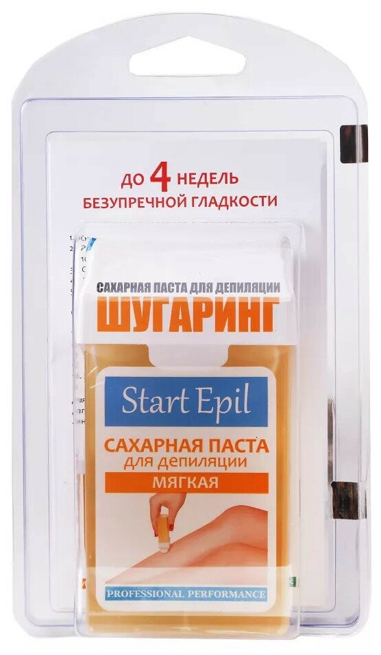 | Применение | обезжирить кожу с помощью лосьона или тоника. Для улучшения сцепления с волосом нанести тальк. Провести процедуру депиляции с помощью бумажной полоски из набора. Снять остатки пасты термальной водой. Завершить процедуру средствами для ухода за кожей:молочком успокаивающим или сливками восстанавливающими. Для повышения эффективности процедуры рекомендуется применять косметические средства линии START EPIL |