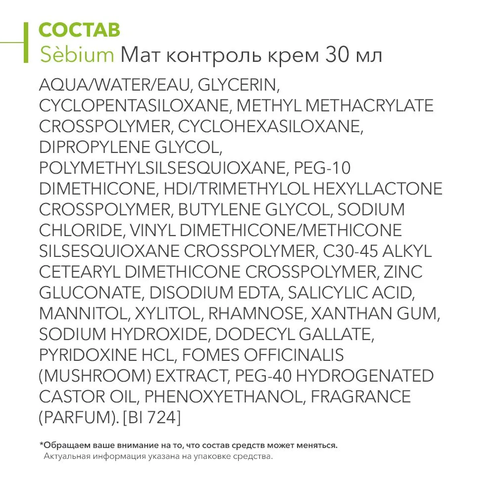 | Состав | aqua, glycerin, cyclopentasiloxane, xylitol, methyl methacrylate crosspolymer, isostearyl alcohol, butylene glycol cocoate, di-c12-13 alkyl malate, mannitol, rhamnose, fructooligo-saccharides, laminaria ochroleuca extract, zinc gluconate, pyridoxine hcl, ginkgo biloba leaf extract, cyclohexasiloxane |