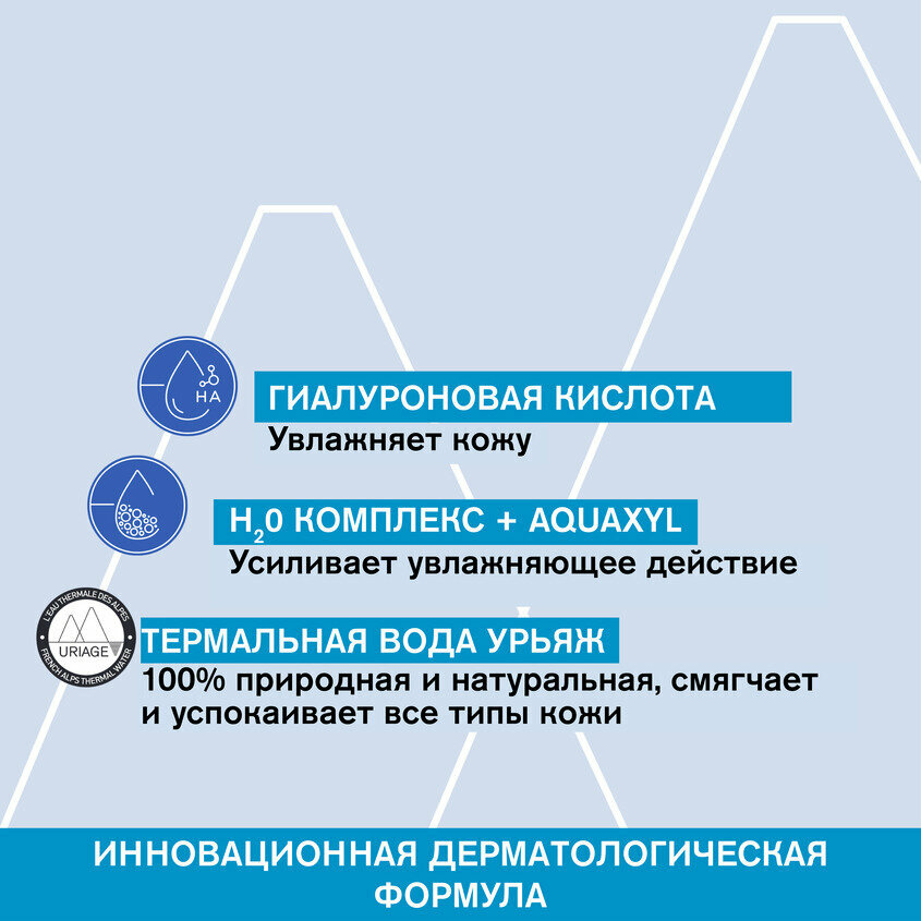 | Активный ингредиент | Термальная Вода Урьяж, Гиалуроновая кислота, Альгинат, Пуллулан, Акваксил, Фитосквалан |