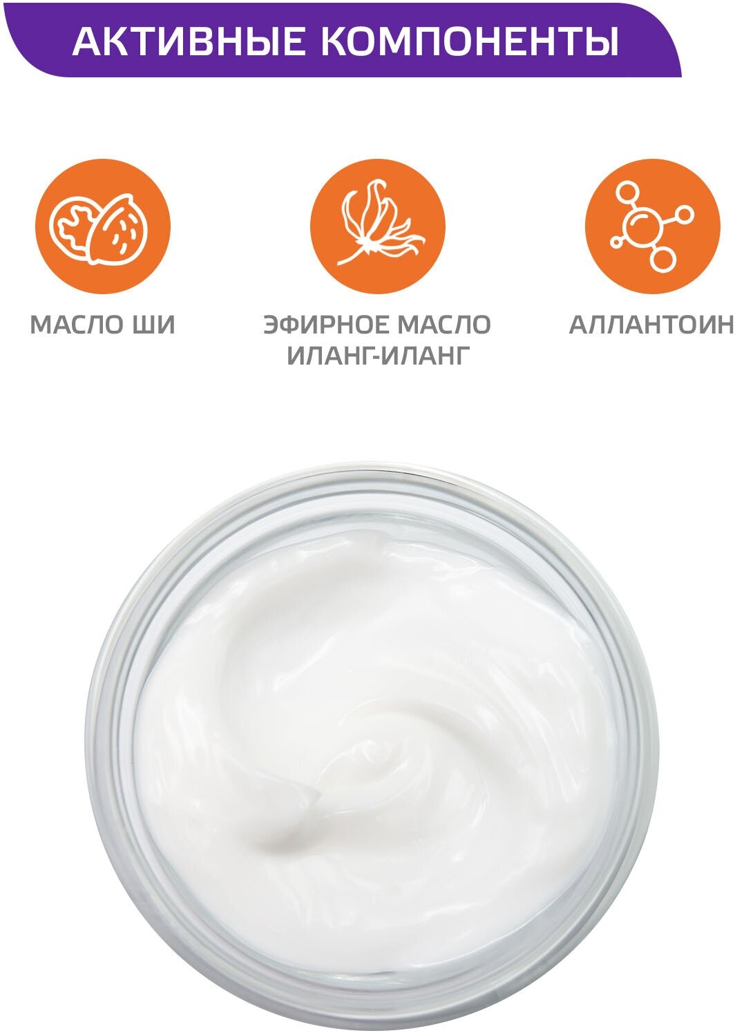 | Активный ингредиент | аллантоин, масло ши, эфирное масло иланг-иланг, минеральное масло |