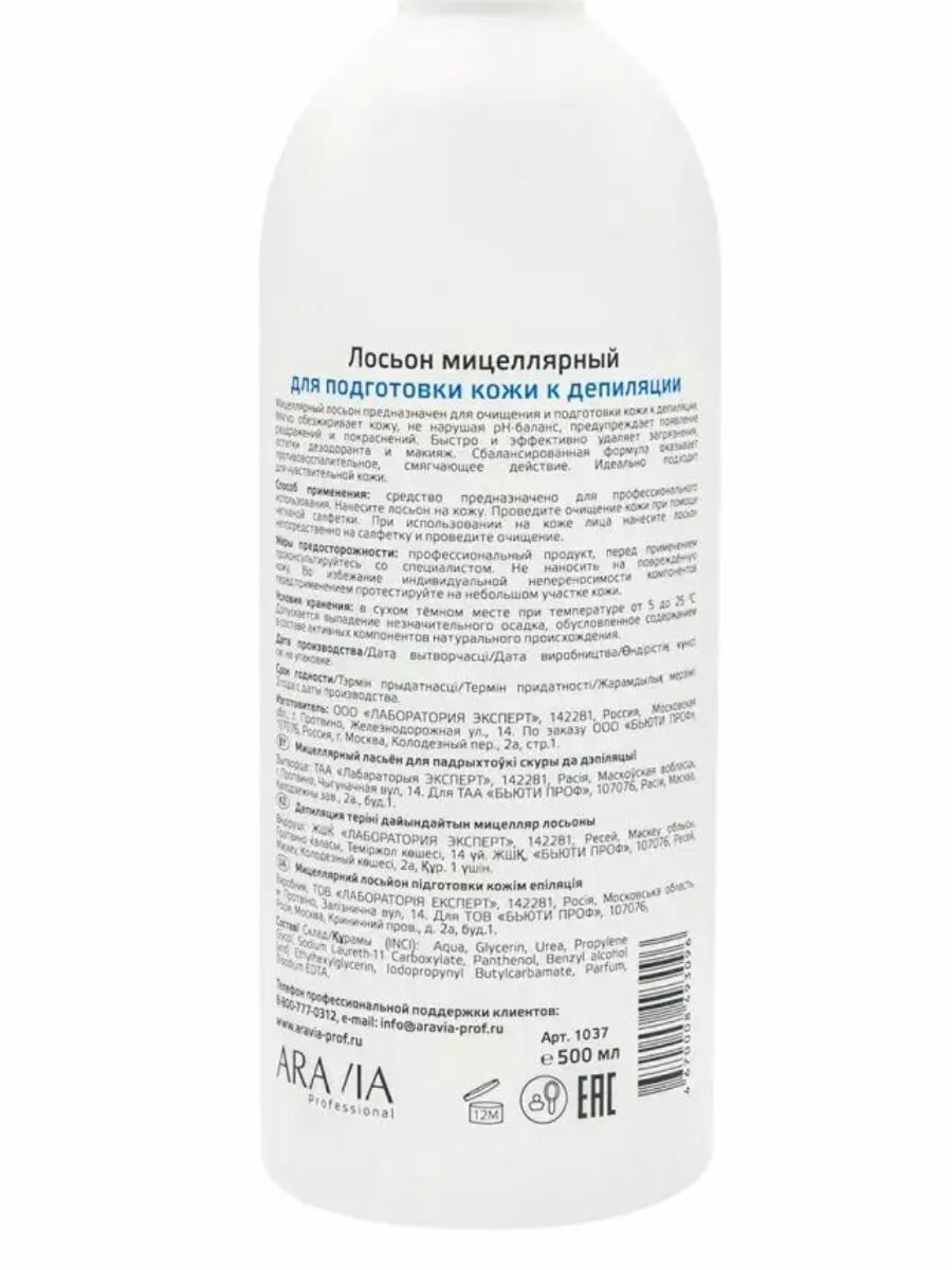 Aravia professional Мицеллярный лосьон для подготовки кожи к депиляции 500 мл (Aravia professional ) (AR1037)
