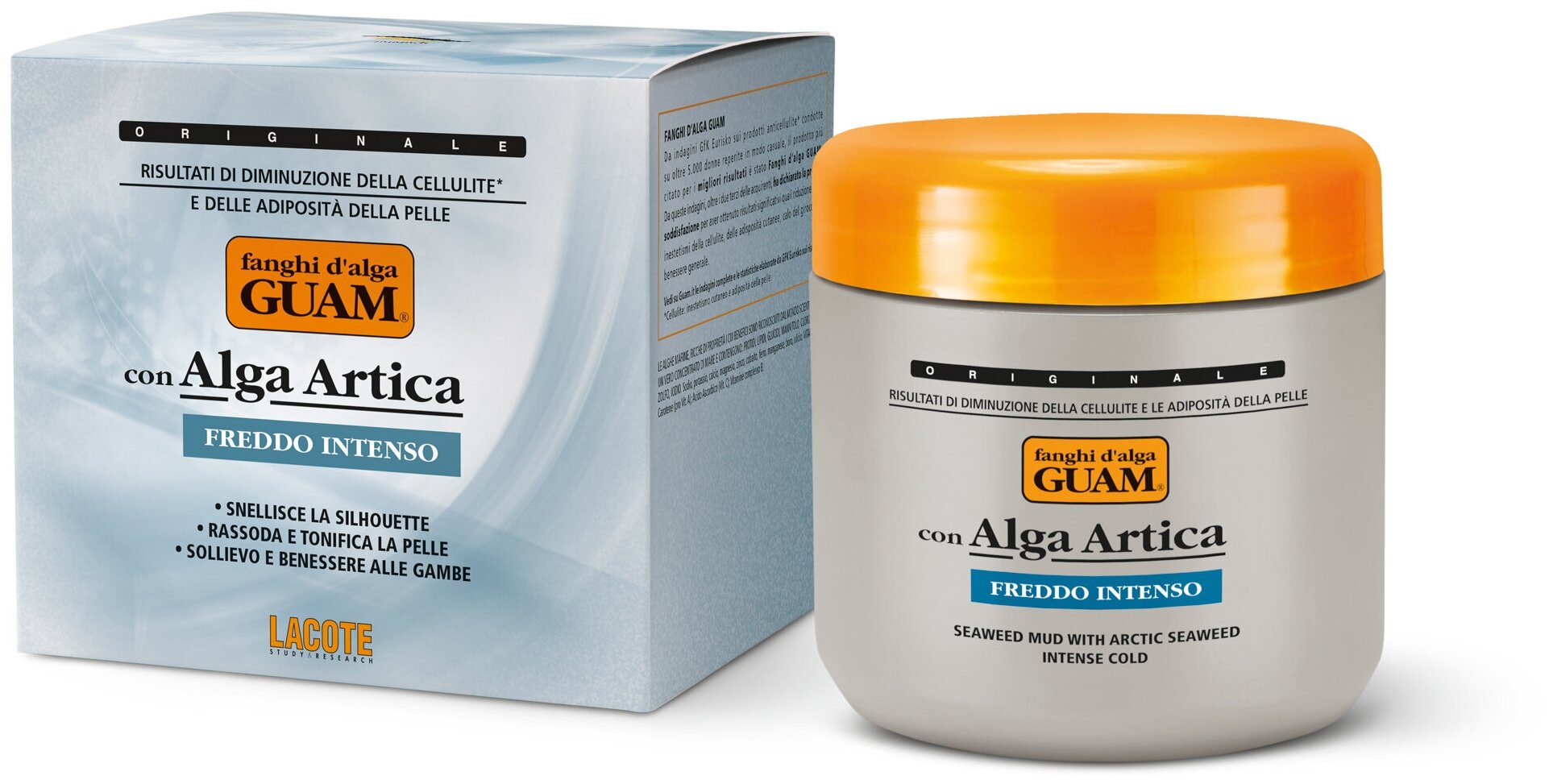 | Активные компоненты | Морская вода, фуллерова земля, экстракт водорослей GUAM (ламинария, фукус пузырчатый, аскофиллиум), «фитокомплекс стройности»: экстракты плюща, конского каштана и орегано, лецитин/фосфатидилхолин, ментол, ментиллактат, эфирные масла лимона и орегано. |