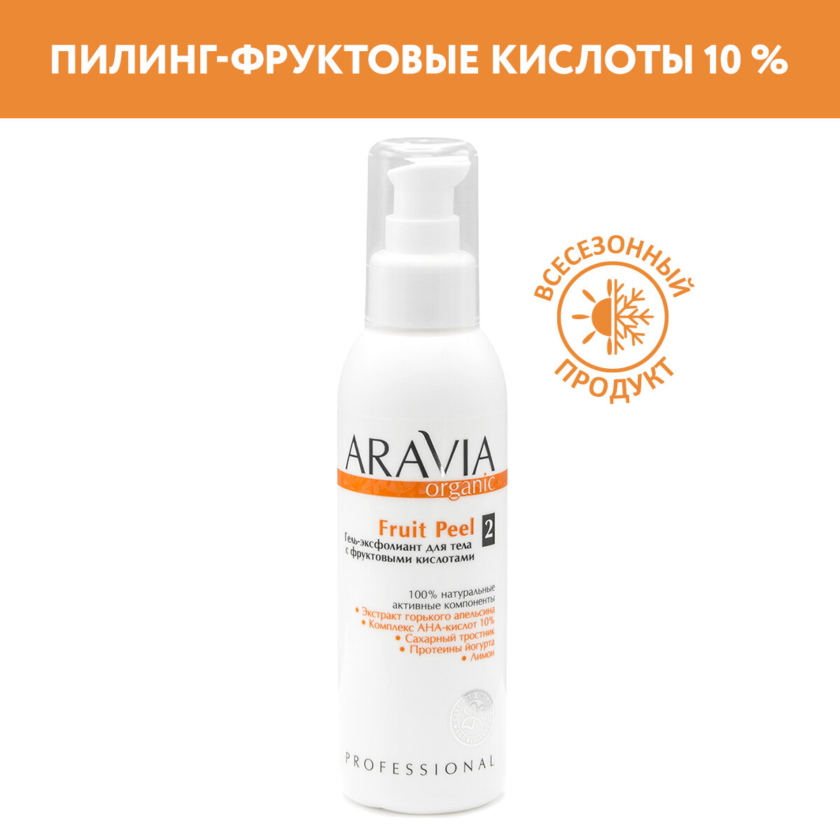 - Отшелушивающий гель-эксфолиант для тела с фруктовыми кислотами Aravia Organic Fruit Peel