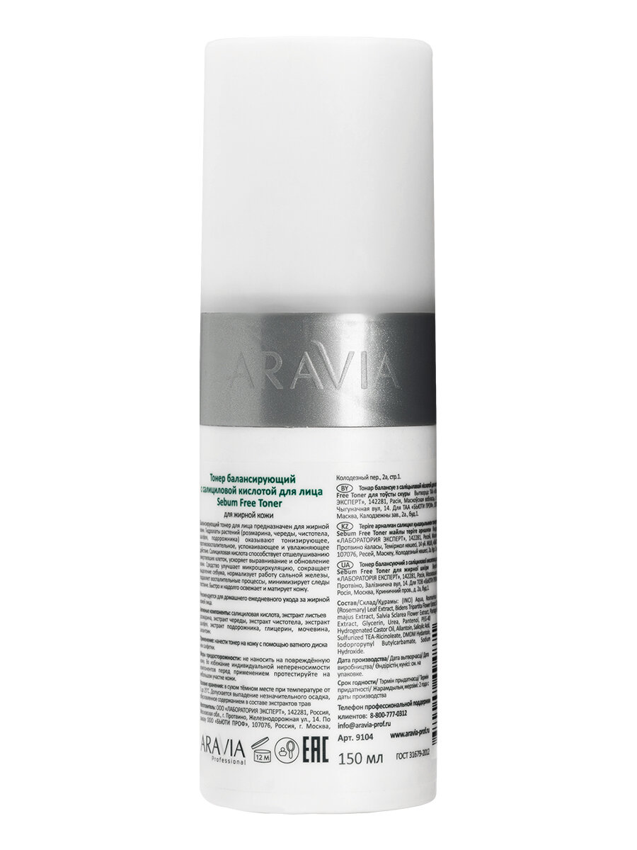 Aravia professional Тонер с салициловой кислотой Sebum Free Toner 150 мл (Aravia professional ) (AR9104)