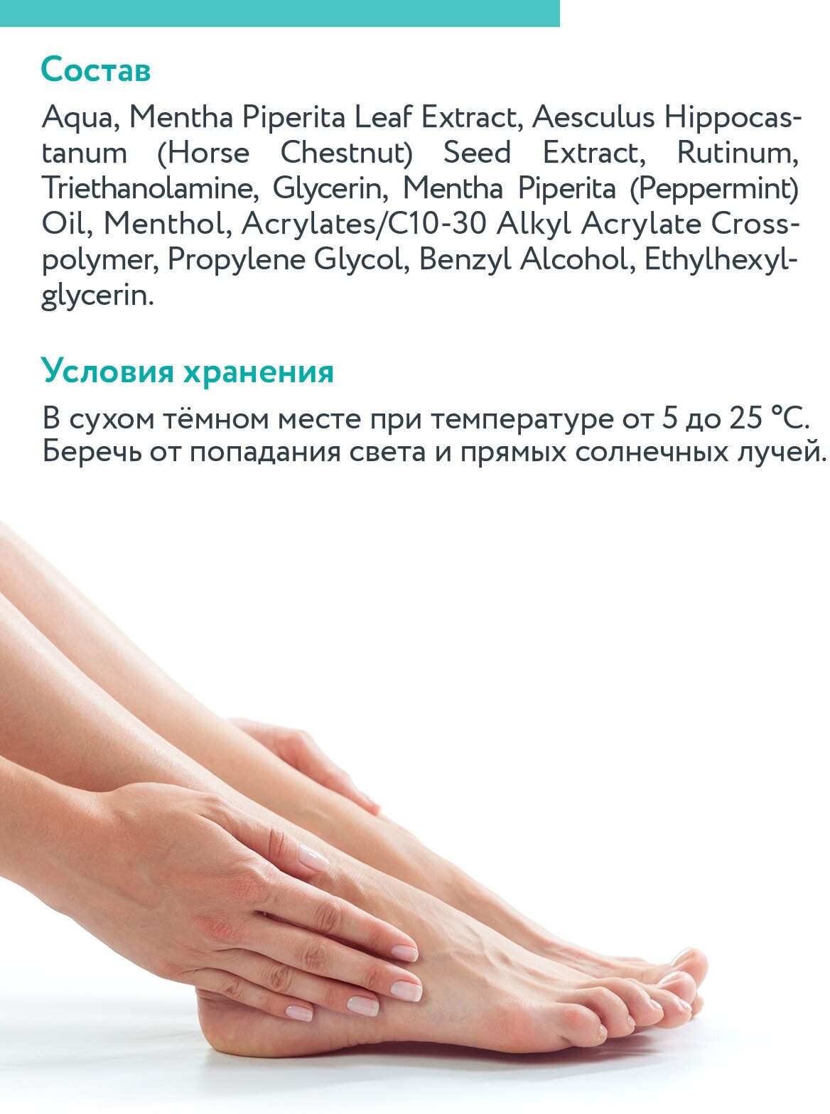 | Активные компоненты | экстракт мяты, конского каштана, рутин, глицерин, эфирное масло мяты, ментол |