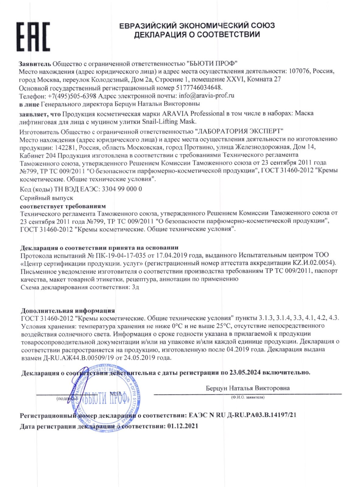 | Коллекция | Aravia Professional Snail-Lifting Mask |