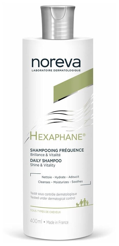 Нежный, эффективный и универсальный шампунь Гексафан от Норева подходит для ежедневного чищения волос и кожи головы для всей семьи. Мягкая моющая основа отлично пенится и очищает, не нарушает баланс эпидермиса. Благодаря смягчающим и увлажняющим компонентам волосы приобретают жизненную силу и природный блеск, легко расчесываются. Шампунь Noreva Hexaphane Shampoing Fr?quence прошел дерматологический контроль, подходит для младенцев с 3-х месяцев), детей и взрослых.