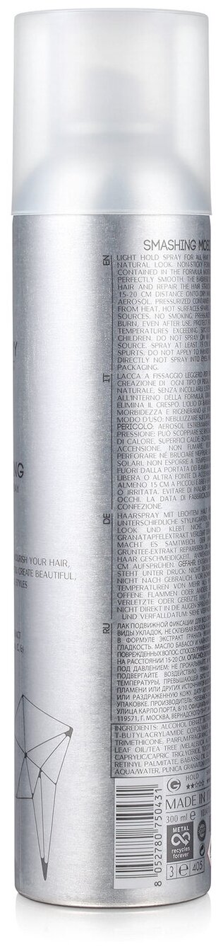 Наносите на сухие волосы после укладки для невесомой фиксации формы. Равномерно распределите на коже головы и по длине, аккуратно промассируйте кончиками пальцев кожу, выполните термо-укладку(утюг, щипцы, бигуди). Распыляйте с расстояния 20-25 см, и моделируйте укладку расческой и/или руками.ШТРИХКОД