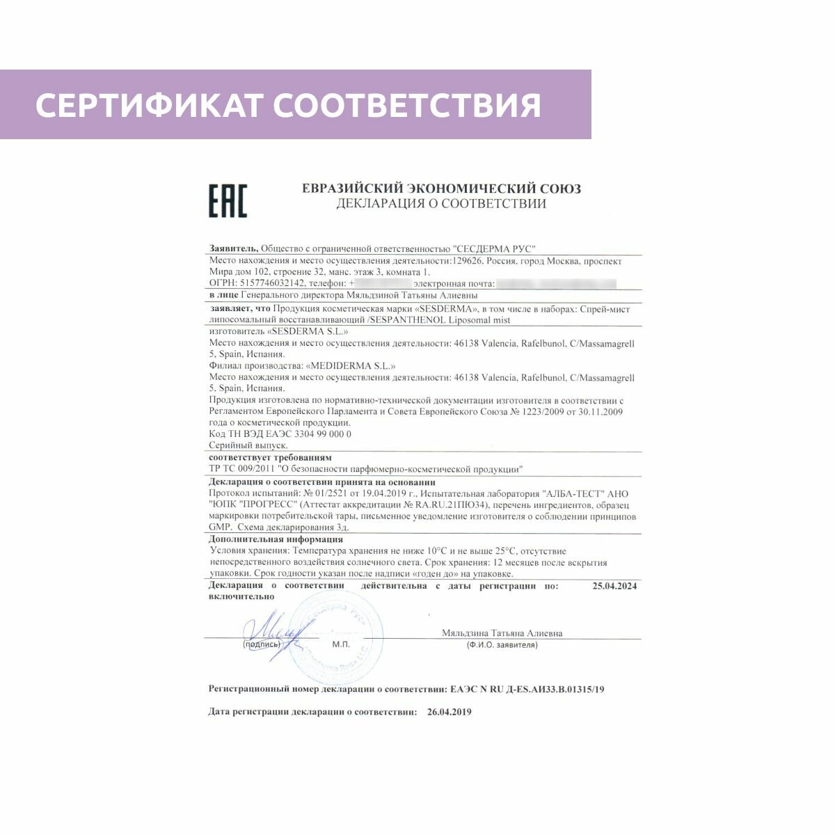 | Класс косметики | Универсальная |