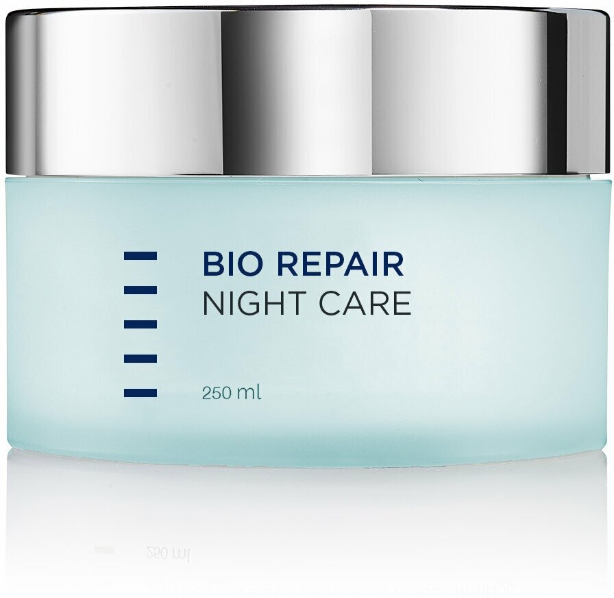 Крем с регенерирующим комплексом Bio Repair Night Care пригодится вам в часы отдыха. Он обладает теми же свойствами, что и дневной вариант, но имеет более плотную текстуру. Поэтому также идеально подойдет в особо холодные и ветреные дни, а также в период восстановления после ожогов, шлифовок и пилингов. Питательный ночной крем активизирует процессы восстановления кожи. Рекомендуется для всех типов кожи.