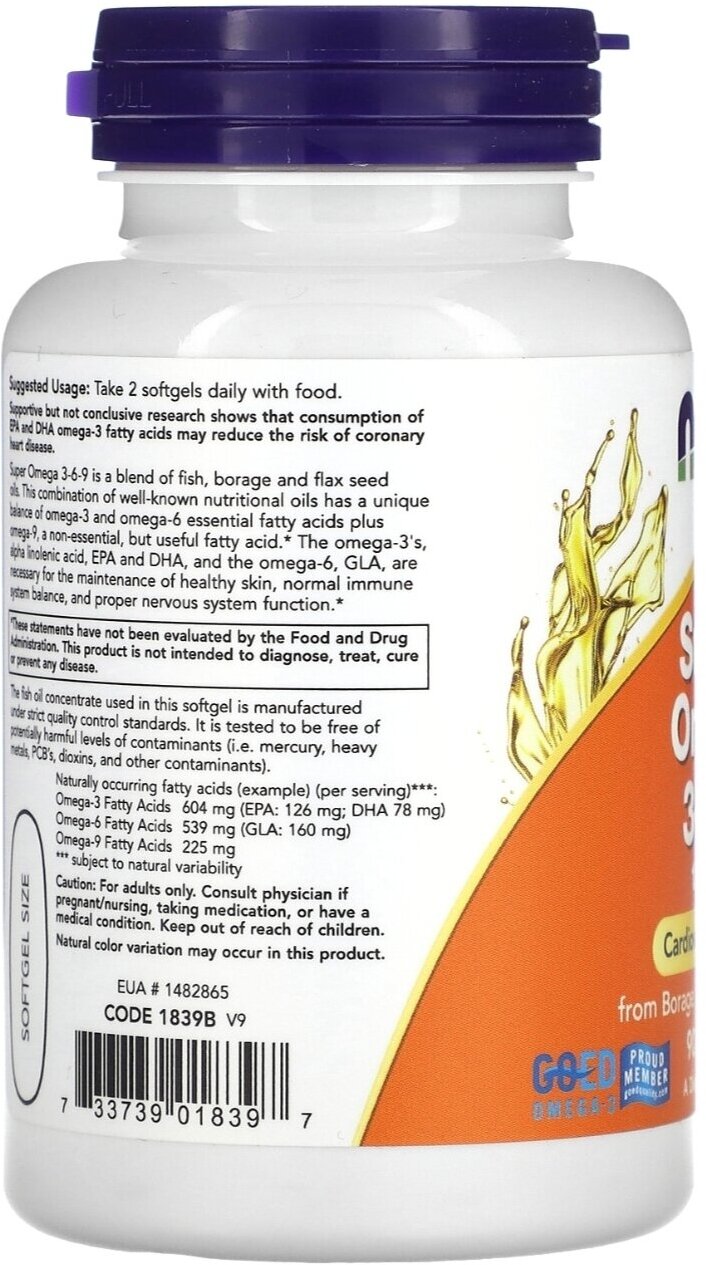 Now Foods Супер Омега-3-6-9 180 капсул (Now Foods ) (NF1841) (размер: без размера)
