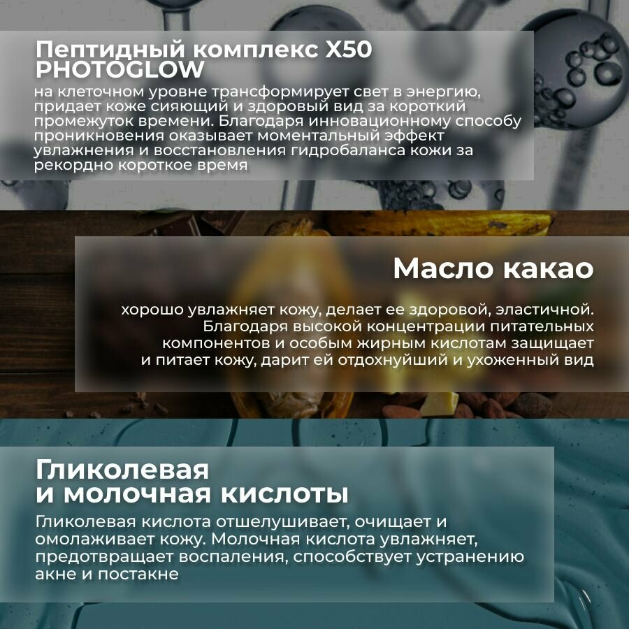| Состав | water (aqua), cetearyl alcohol, glycerin, glyceryl stearate se, c12-15 alkyl benzoate, cyclopentasiloxane, propanediol, galactoarabinan, cetearyl ethylhexanoate, theobroma cacao (cocoa) seed butter, dimethicone, cetearyl glucoside, phenoxyethanol, phenyl trimethicone, fragrance (parfum), chlorphenesin, glyceryl polyacrylate, disodium edta, caprylyl glycol, glucose, xanthan gum, sodium hydroxide, glyceryl caprylate, phenylpropanol, lactic acid/glycolic acid copolymer, chlorella vulgaris extract, polyvinyl alcohol, heptapeptide-15 palmitate, geraniol, linalool |
