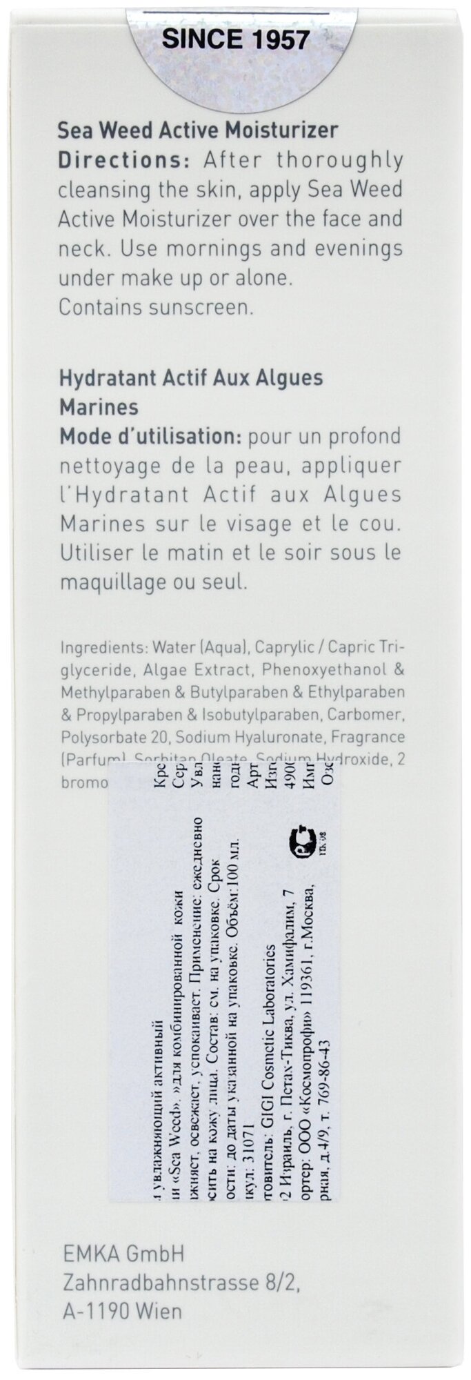 GIGI Крем увлажняющий активный 100 мл (GIGI ) Sea Weed Active Moisturizer Cream