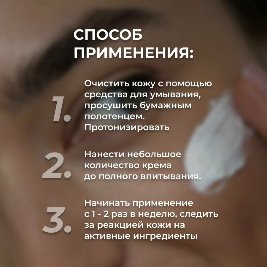 Нанесите крем на чистую кожу лица до полного впитывания. Применяйте 1-2 раза в день или как рекомендовано специалистом