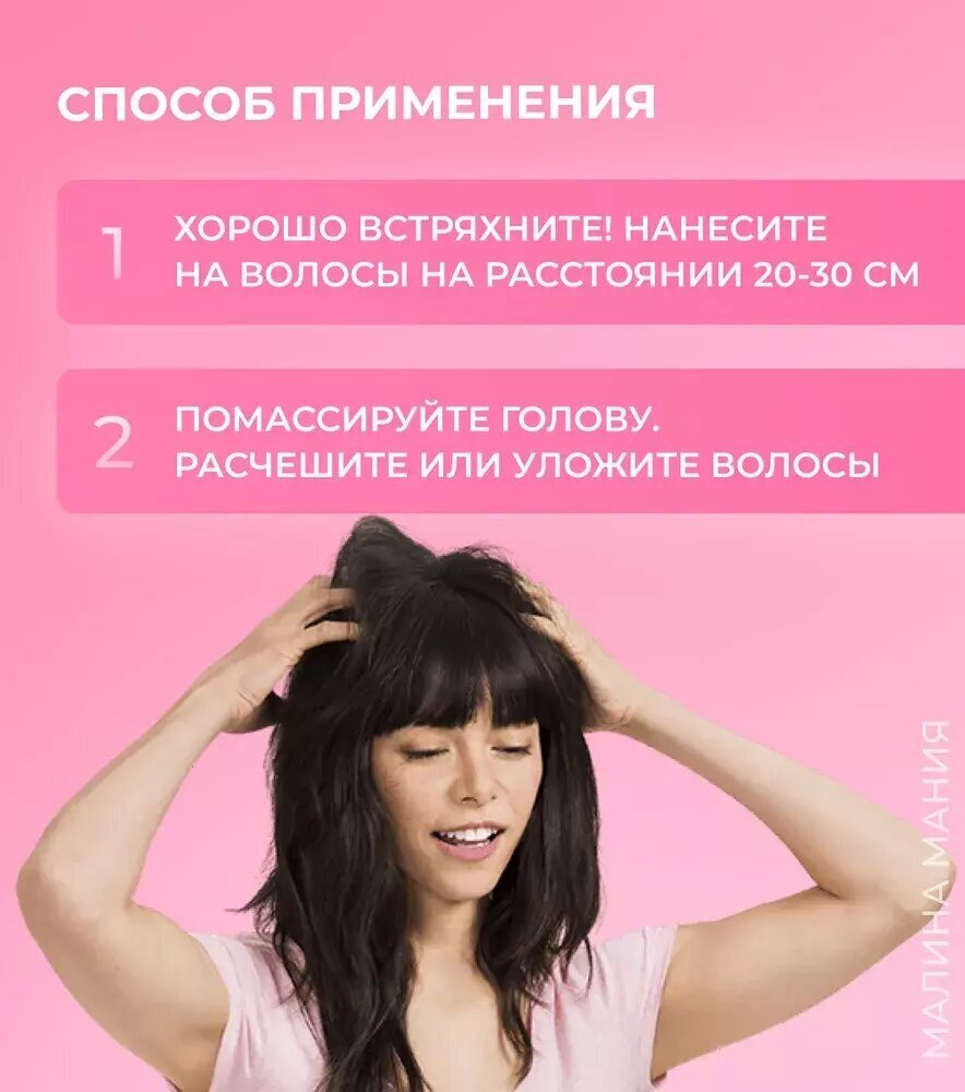 | Применение | Распылите равномерно на волосы на расстоянии вытянутой руки средство из флакона. Помассировав кожу голову, тщательно пройдитесь расческой по всей длине. |