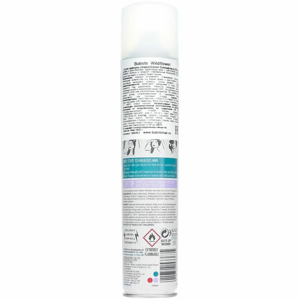 Привнесите в свою жизнь аромат волшебных диких цветов с новым Batiste ! Свежий и женственный! Фруктовый микс с цветочным сердцем освежает волосы и придает современный изысканный аромат, волосы выглядят и пахнут божественно.