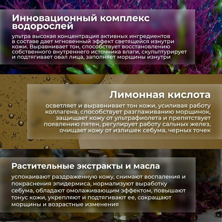 | Проблема | Снижение плотности и упругости кожи, Тусклый цвет лица |