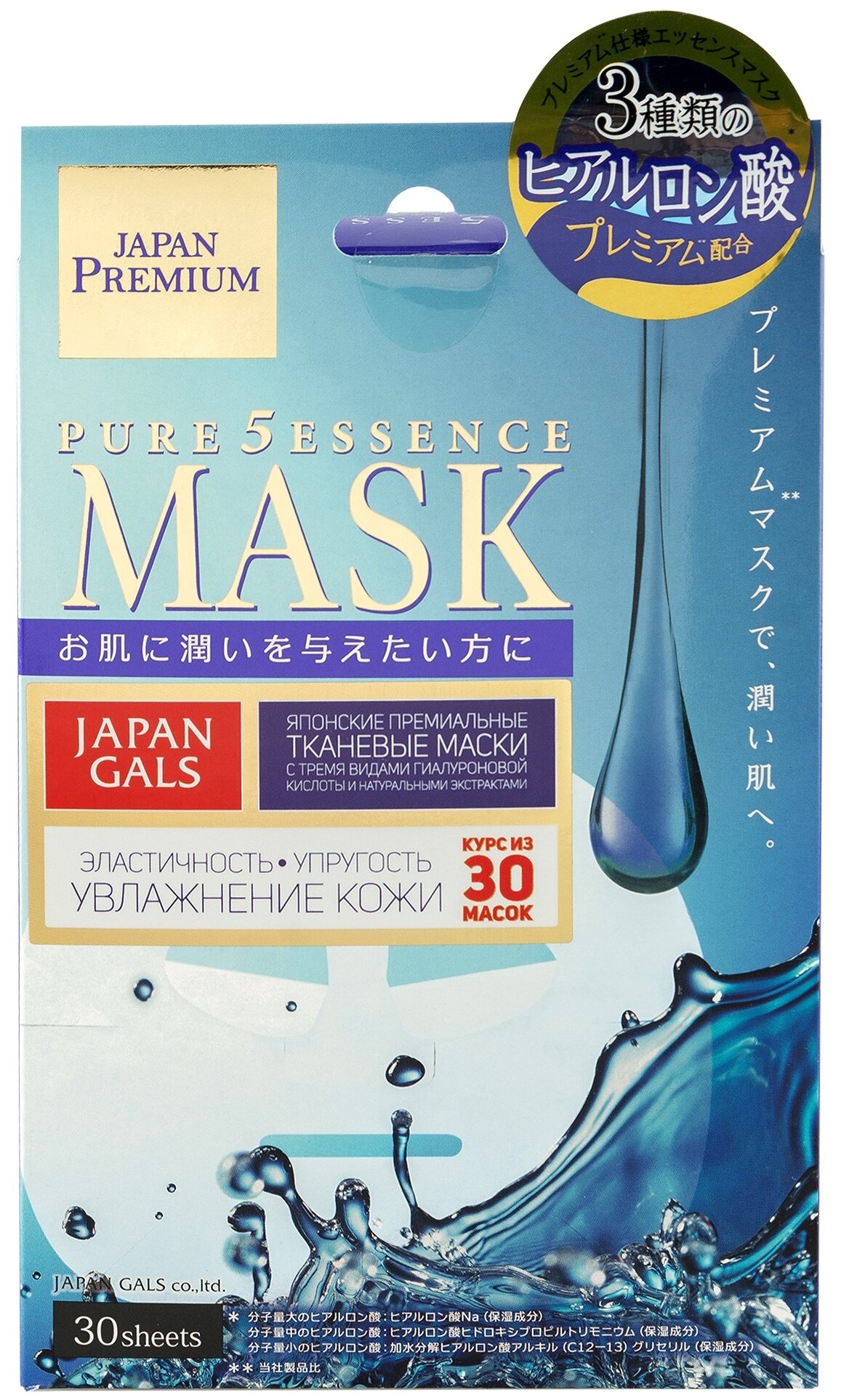 Japan Gals Premium Маска для лица c тремя видами гиалуроновой кислоты 30 шт (Japan Gals ) (JG1003)