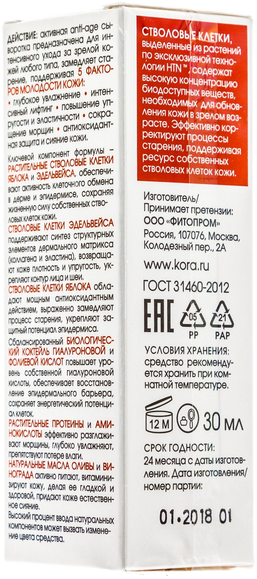 КОРА Крем-сыворотка ревитализант 5 факторов молодости кожи 30 мл (КОРА ) (45895)