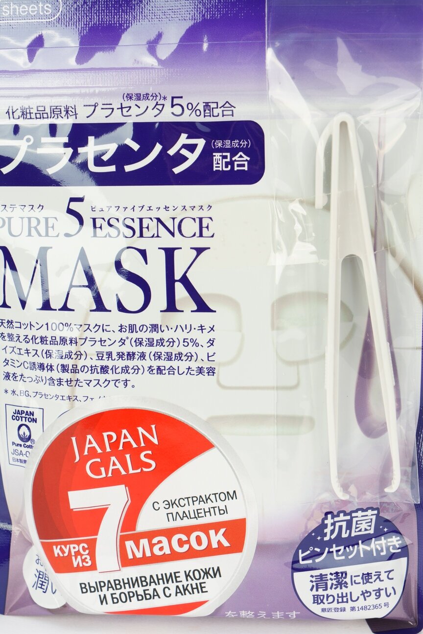 - ✔ маска для лица Japan Gals Pure 5 Essential, 7 шт, с плацентой [09724] [4513915009724] ★