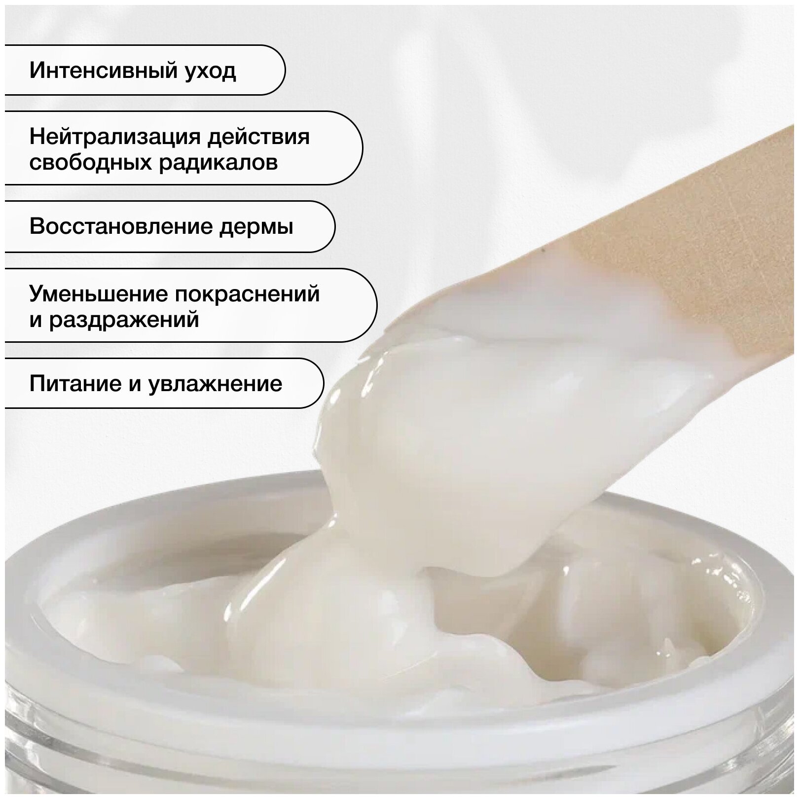 | Активный ингредиент | супероксиддисмутаза, пантенол, натуральный пребиотик (инулин, альфа-глюкан олигосахарид), витамин С, босвеллия, липа, гранат, сок алоэ вера, масла ши, авокадо, соевое, суперувлажняющий комплекс |