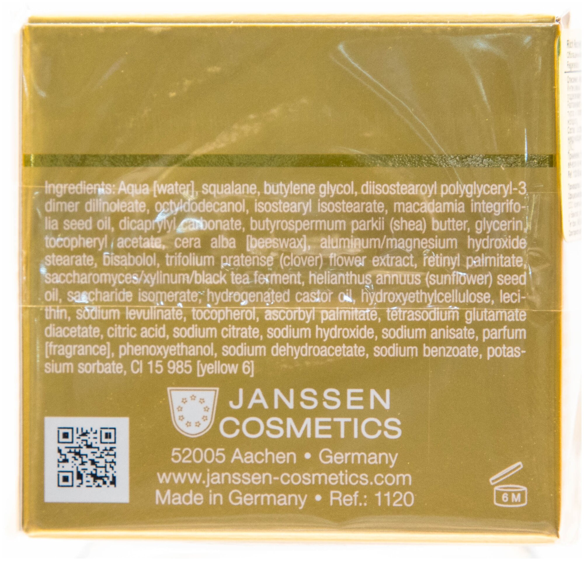 Крем очень понравился, марка Janssen для меня остаётся фаворитом. Мне 34 года, особых проблем с кожей нет, морщин тоже, но всегда предпочитаю работать на профилактику. Продукт имеет очень плотную текстуру, впитывается не сразу, но минусом это не является. После нанесения лицо немного блестит, но это ощущение очень быстро проходит; если продукт наносить массажными движениями, кожа становится как бархат; крем поры не забивает, не скатывается, воспаления не провоцирует. При регулярном применении кожа уплотняется, лицо свежее и сияющее. Использую по утрам в зимнее время года, летом будет тяжеловат. Продукта хватает на 3-4 месяца использования.