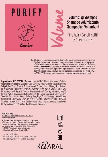 Потребовался шампунь для придания объема волосам, эффекта лёгкости. Мой выбор остановился на итальянской марке Kaaral, в целом, они выпускают хорошую продукцию по доступным ценам. Шампунь отлично пенится, промывает волосы с первого раза, имеет легкий травяной аромат. Кожу головы и длину не сушит, придаёт объём и рассыпчатость волосам.
