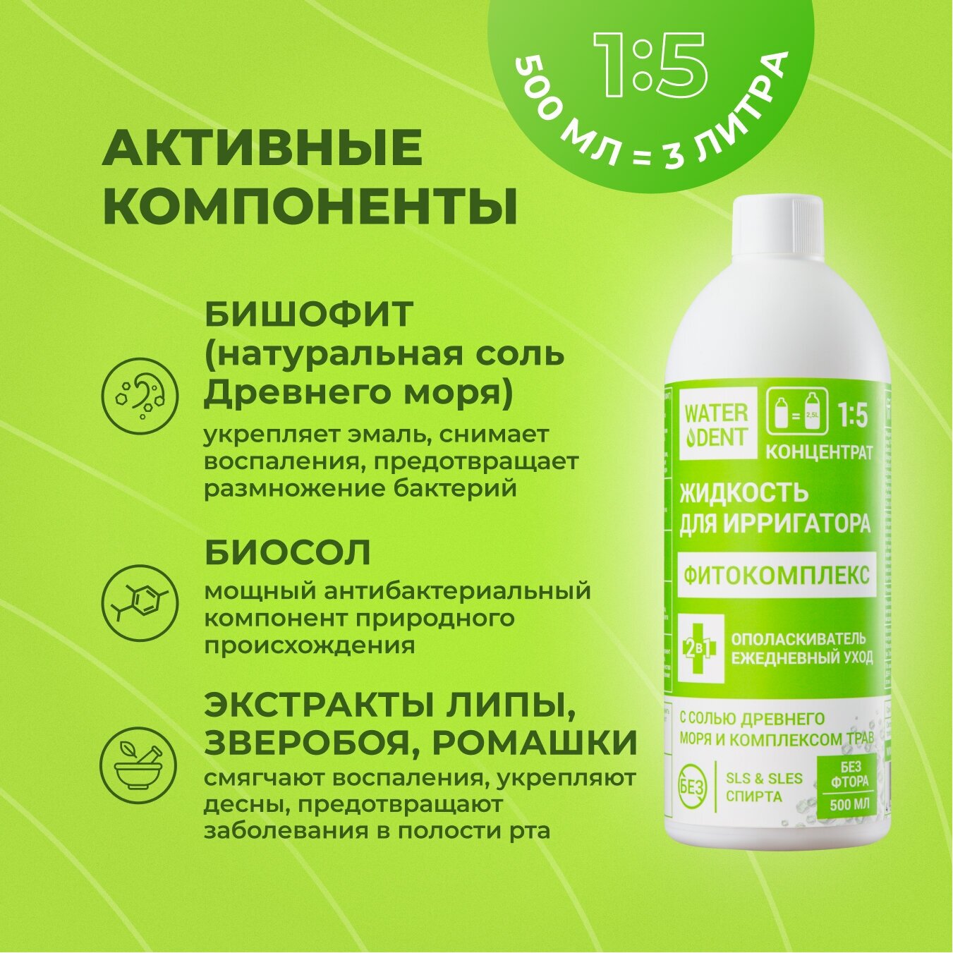 | Способ применения | Жидкость разбавить водой в соотношении 1:5. Использовать вместе с ирригатором или как ополаскиватель для ежедневного ухода за полостью рта, а также в качестве эффективного средства для очищения брекит-систем, имплантов и зубных протезов. |