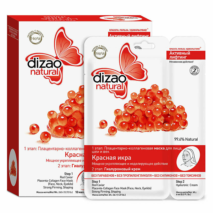 Dizao Двухэтапная маска для лица шеи и век "Красная икра" 1 шт. (Dizao ) (20377-1)