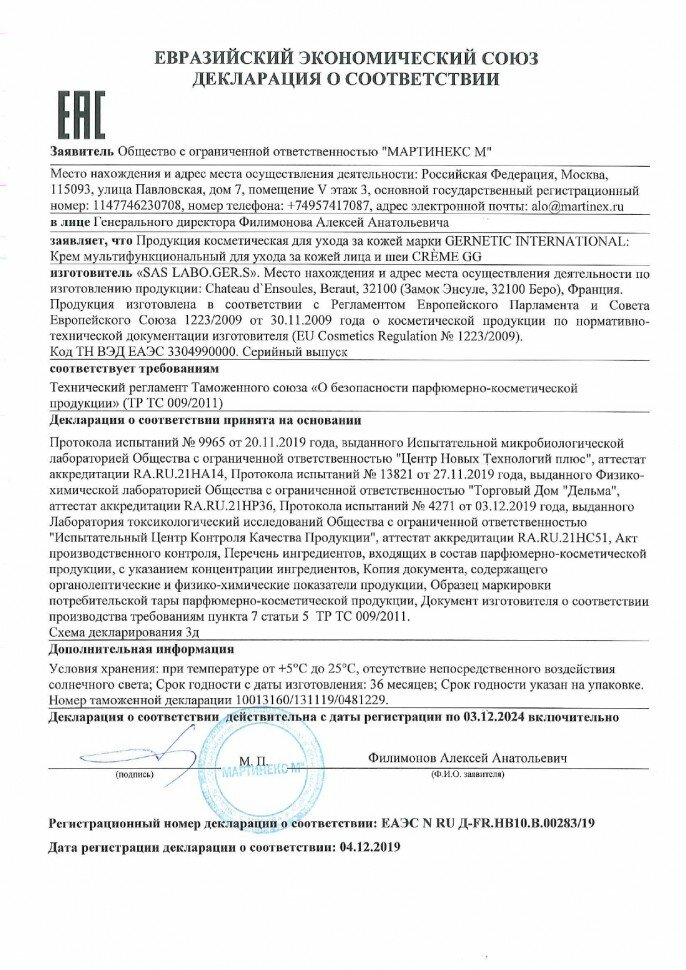 | Способ применения | Нанесите небольшое количество крема на очищенную кожу лица, шеи, декольте. Распределите массажными движениями. Применяйте 1-2 раза в день |