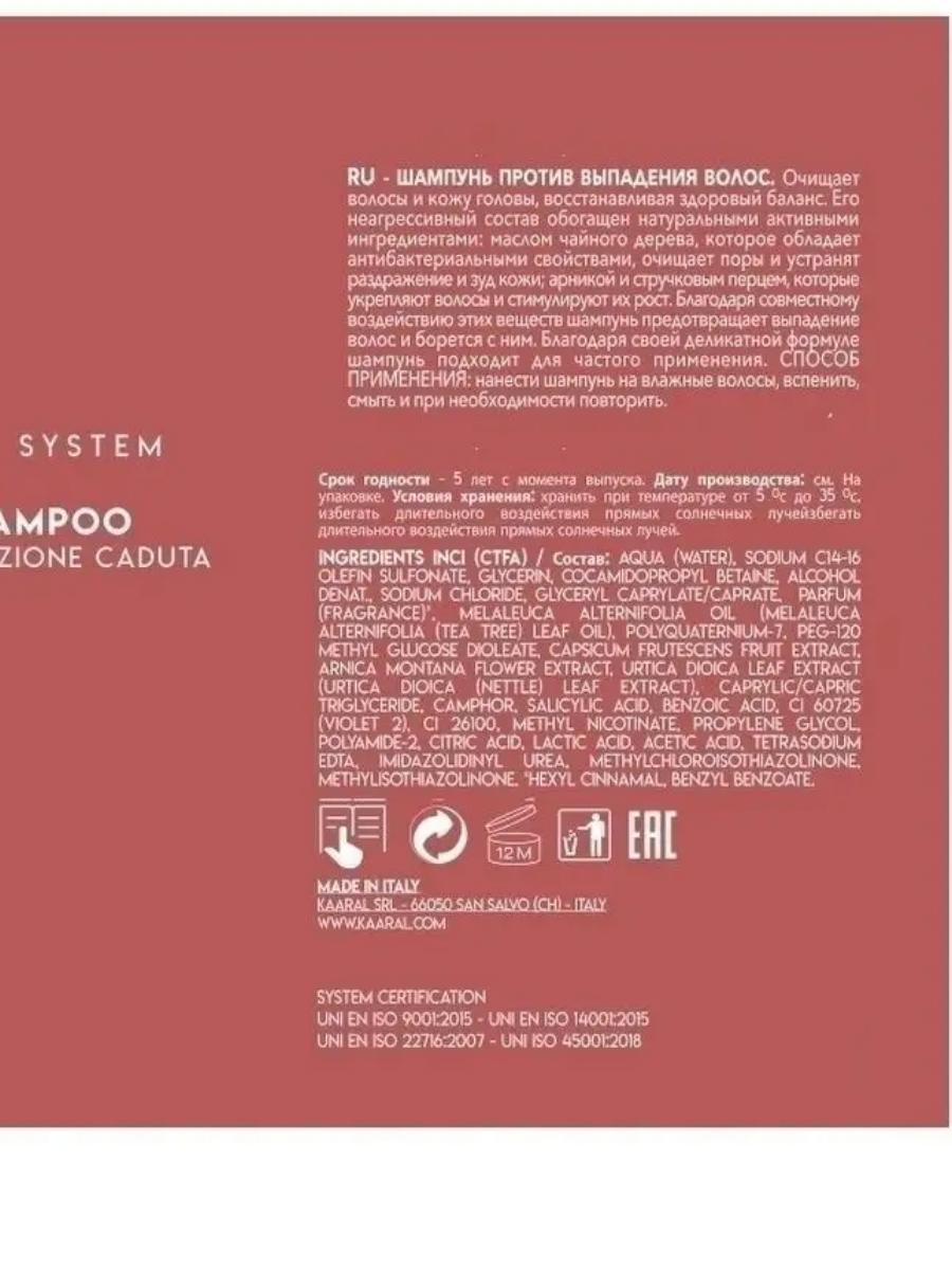 На сегодняшний день товар «Kaaral Шампунь для профилактики выпадения волос Anti Hair Loss Shampoo 1000 мл (Kaaral ) (K1058)» можно купить с кешбеком в 1 магазине: Яндекс.Маркет