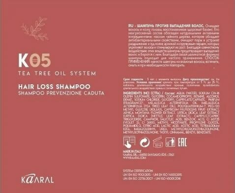 Kaaral Шампунь для профилактики выпадения волос Anti Hair Loss Shampoo 1000 мл (Kaaral ) (K1058)