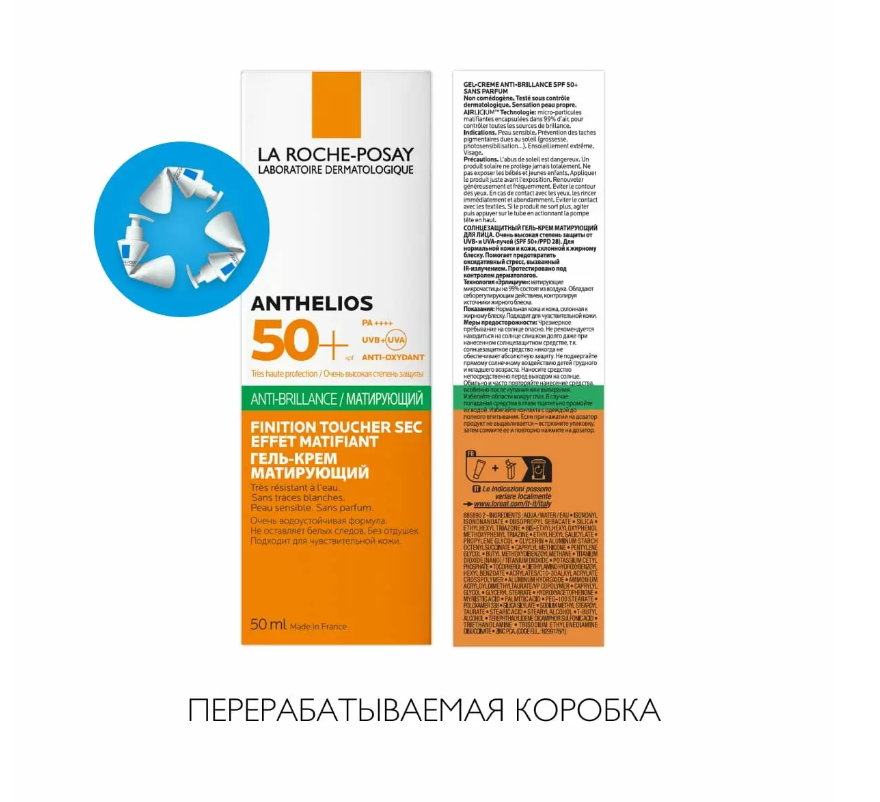 Матирующий гель-крем Anthelios SPF 50+ разработан специально для фотозащиты таких типов кожи. Благодаря уникальной формуле, средство не только защищает кожу от солнца, но и контролирует источники жирного блеска: себум и пот. Быстросохнущая текстура быстро впитывается, не оставляя белых следов. Средство протестировано под контролем дерматологов.