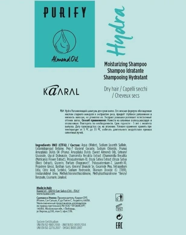 | Коллекция | KAARAL Purify-Hydra Shampoo |