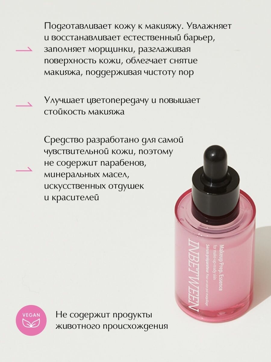| Полное описание | Blithe InBetween Makeup Prep Essence - Эссенция-база под макияж - это невесомая эссенция на основе ферментированных соевых бобов, риса и экстракта томата восстанавливает природный барьер: кожа лица сияет естественной красотой и выглядит свежей, здоровой и ухоженной как с макияжем, так и без него. Инновационная формула эссенции защищает кожу от загрязнения и закупоривания пор, нейтрализует вредные компоненты из средств для макияжа, защищает от агрессивного воздействия внешней среды, Усиливает и при необходимости заменяет классический уход за лицом, увлажняет кожу максимально глубоко, насыщает ее экстрактами натуральных компонентов. Ультра-тонкая жидкая текстура сохраняет влагу в коже и не дает жирному блеску проявиться в течение дня. Продукт-инновация готовит кожу к нанесению макияжа, одновременно обеспечивает его легкое снятие, заполняет морщинки, обеспечивает сияние кожи. Без парабенов, минеральных масел, искусственных красителей и отдушек, подходит для чувствительной кожи.Способ применения: С помощью дозатора нанесите пару капель эссенции на подушечки пальцев и легкими похлопывающими движениями распределите по лицу. Приступите к нанесению любого из праймеров для финальной подготовки кожи к идеальному макияжу. Для ежедневного применения.Объем |