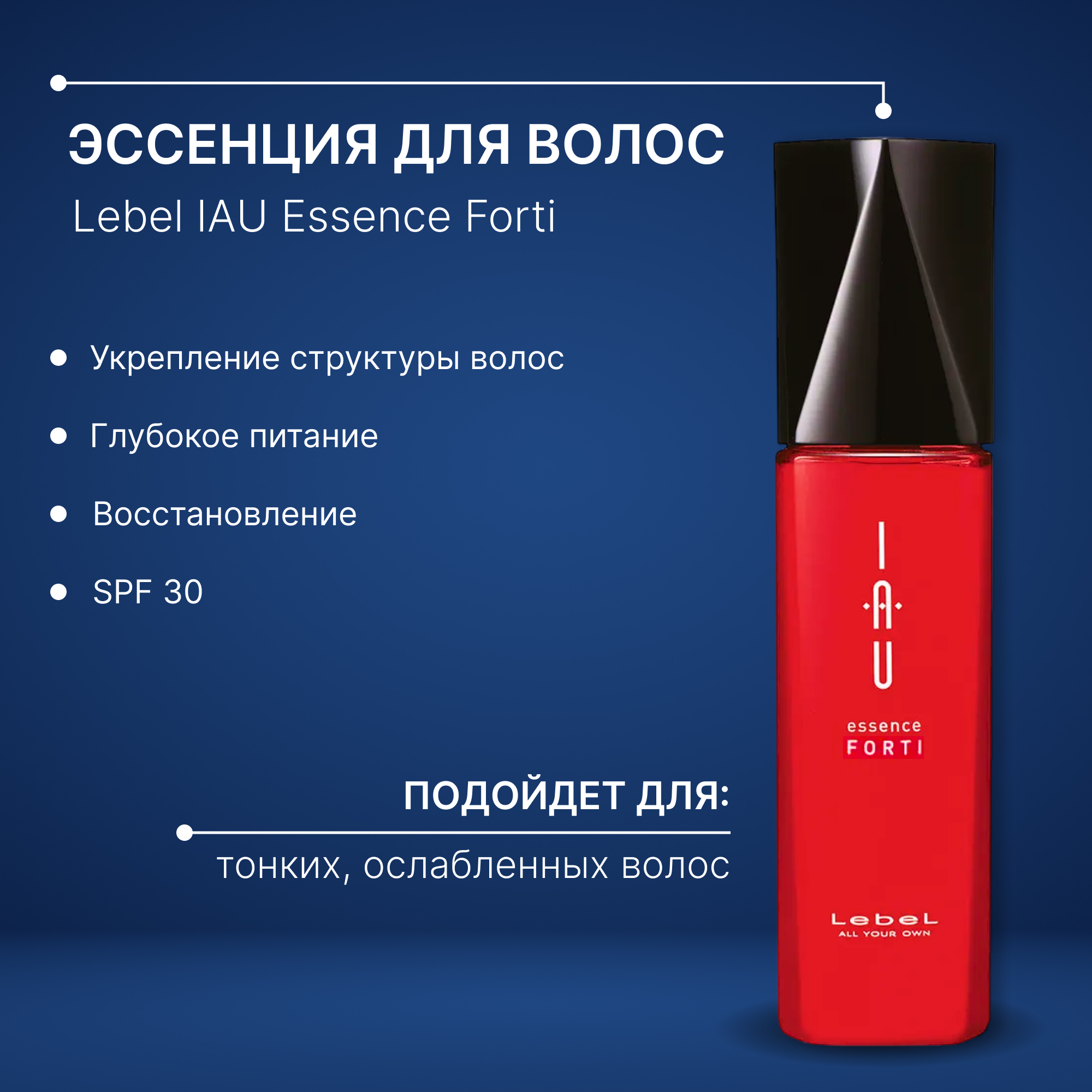 | Полное описание | Эссенция для волос Укрепление Lebel IAU Essence Forti:Восстанавливает и укрепляет структуру тонких и ослабленных волосСохраняет молодость волос, препятствует истончению структурыПридаёт волосам эластичность, шелковистость, плотность и блескЗащищает волосы от агрессивных факторов окружающей среды и УФ-лучейПрепятствует образованию статикиПрепятствует впитыванию неприятных внешних запаховSPF 30Способ применения: Равномерно распределить эссенцию по влажным волосам, начиная с кончиков, по всей длине (2 нажатия дозатора для волос средней длины). Приступить к укладке. Для придания волосам дополнительного блеска нанести немного средства (1 нажатие) на уже высушенные волосы.Активные ингредиенты |