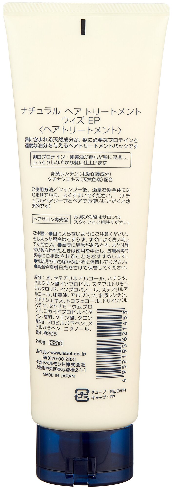 | Полное описание | Питательная маска Яичный протеин Lebel Natural Hair Soap Treatment:Восстанавливает волосы, придаёт плотность.Защищает от термического воздействия фена и утюжка.Придаёт волосам блеск.Облегчает расчёсывание.Защищает от УФ (SPF 15).Состав: яичный протеин, масло яичного желтка, витамин Е, экстракт гардении, мёд.Способ применения |
